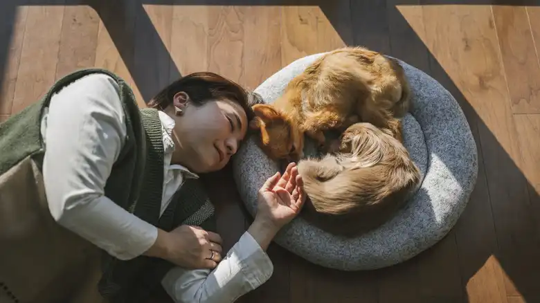 Your dog cuddles with you