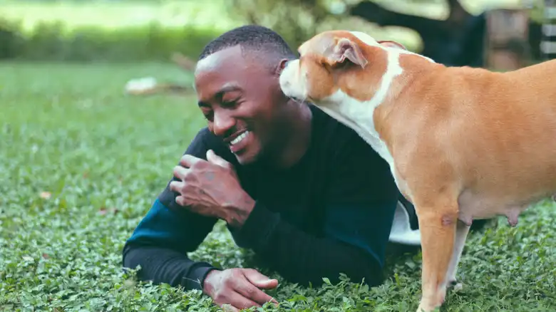 Pet parents posting on r/Dogs describe how much their dogs love to lick their faces and hands. One shared that "One of mine will only dole out a lick if she's especially happy or excited." Some say that their eager pups would spend all day licking them if it were possible. Your dog only needs to exhibit a mild interest for it to make sense for you to consider licking as a sign of happiness. There are a couple of reasons why a canine might lick a human, but happiness is the biggest. Dogs tend to amplify their good feelings by sharing them with others. When your dog licks you, you're sharing a special moment.